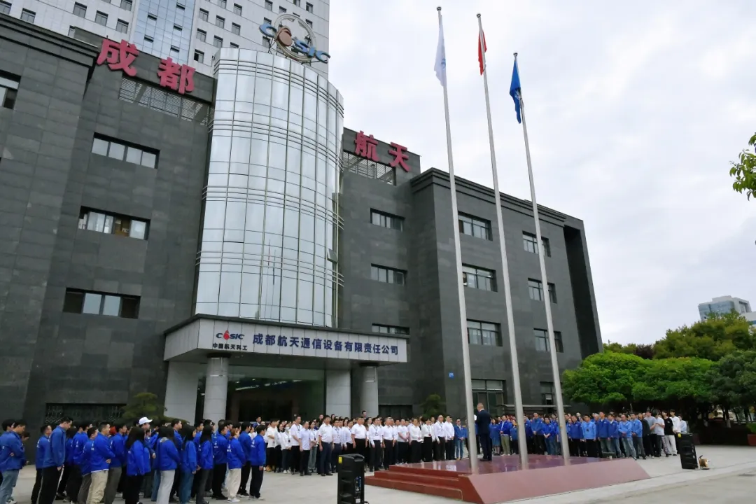 為慶祝第九個“中國航天日”,按照集團公司統一部署,2024年4月24日上午,航天通信本部及所屬各單位分別在杭州、成都、沈陽、綿陽、鎮江等地舉行升旗儀式,共同升起“同一面旗幟”。