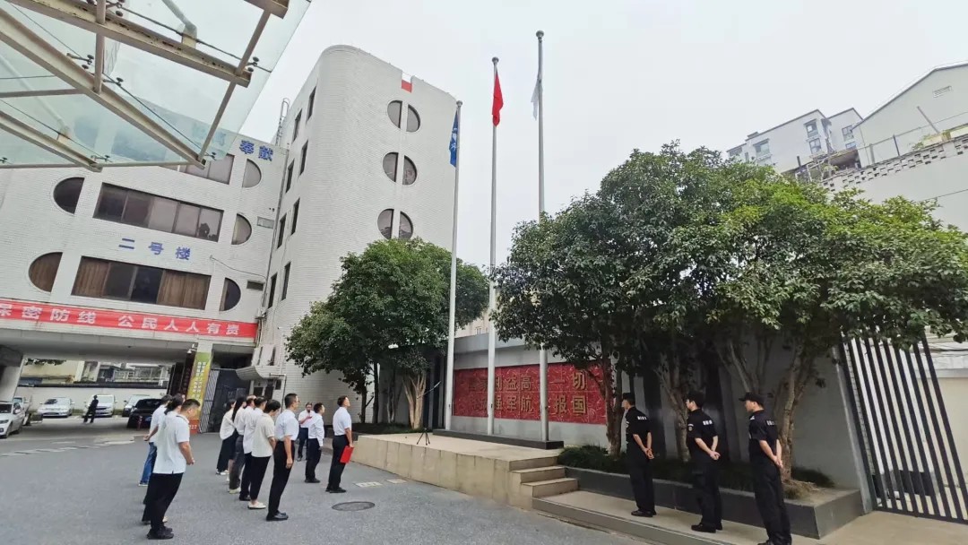 9月30日,航天通信所屬單位在杭州、成都、沈陽、長沙、綿陽、鎮(zhèn)江等地同步舉行升旗儀式。