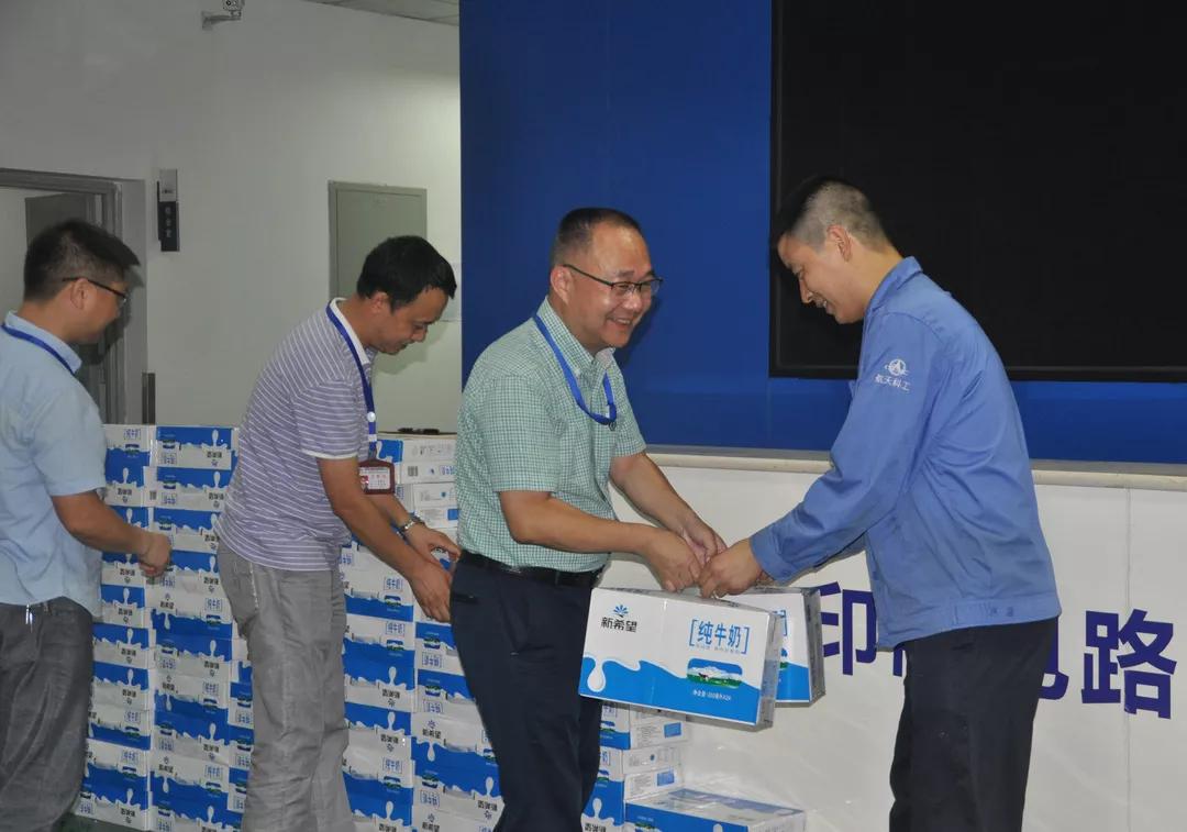 723日晚8點,在夜班員工即將上崗之際,成都航天黨委書記、董事長劉厚文一行來到印制電路事業部代表公司黨委慰問持續加班奮斗在一線的員工,為他們送去了組織的關懷和溫暖。劉厚文對廣大一線員工的辛勤工作和努力成果表示了肯定和感謝,并鼓勵大家安心工作,齊心協力,共克難關,同時注意合理安排休息時間,及時補充能量,以飽滿的工作熱情和精神狀態投入到生產工作中。