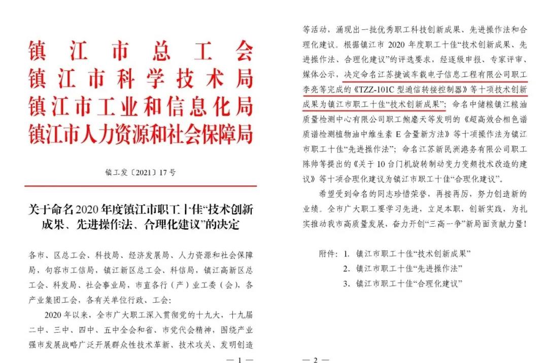 近日,該技術創(chuàng)新項目被鎮(zhèn)江市總工會、科學技術局、工業(yè)和信息化局與人力資源和社會保障局于授予鎮(zhèn)江市職工十佳“技術創(chuàng)新成果”獎。研發(fā)團隊表示:后續(xù)將珍惜榮譽、再接再厲,大力弘揚航天精神,同時要充分發(fā)揮引領和傳、幫、帶、教等作用,將個人的先進經(jīng)驗轉(zhuǎn)化為群體的技能優(yōu)勢,把在科研開發(fā)中遇到和解決的技術難題進行總結(jié)、研究,更好地發(fā)揮示范帶頭作用,為企業(yè)高發(fā)展作出更大貢獻!