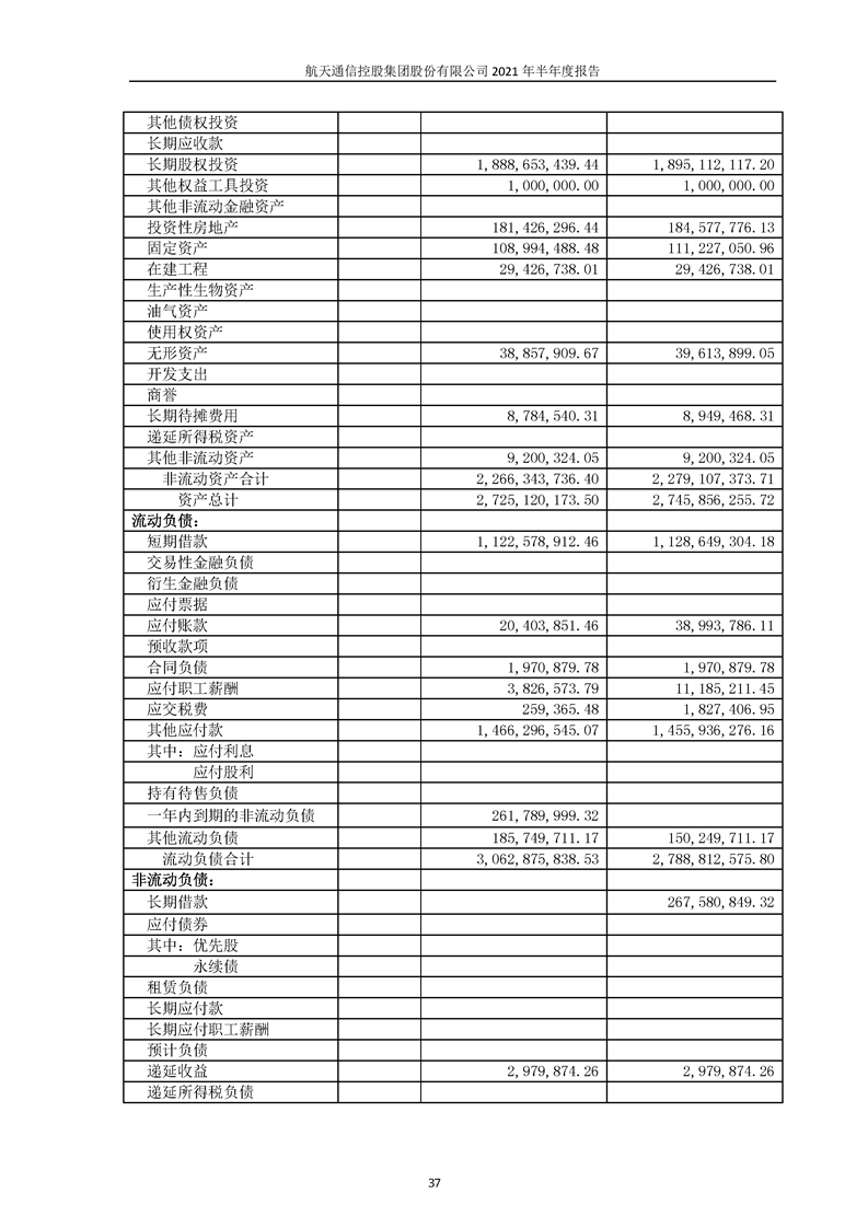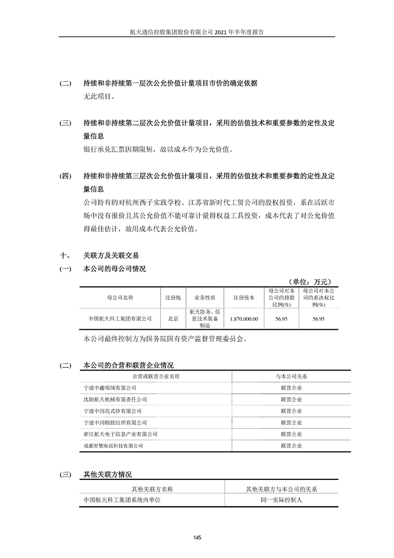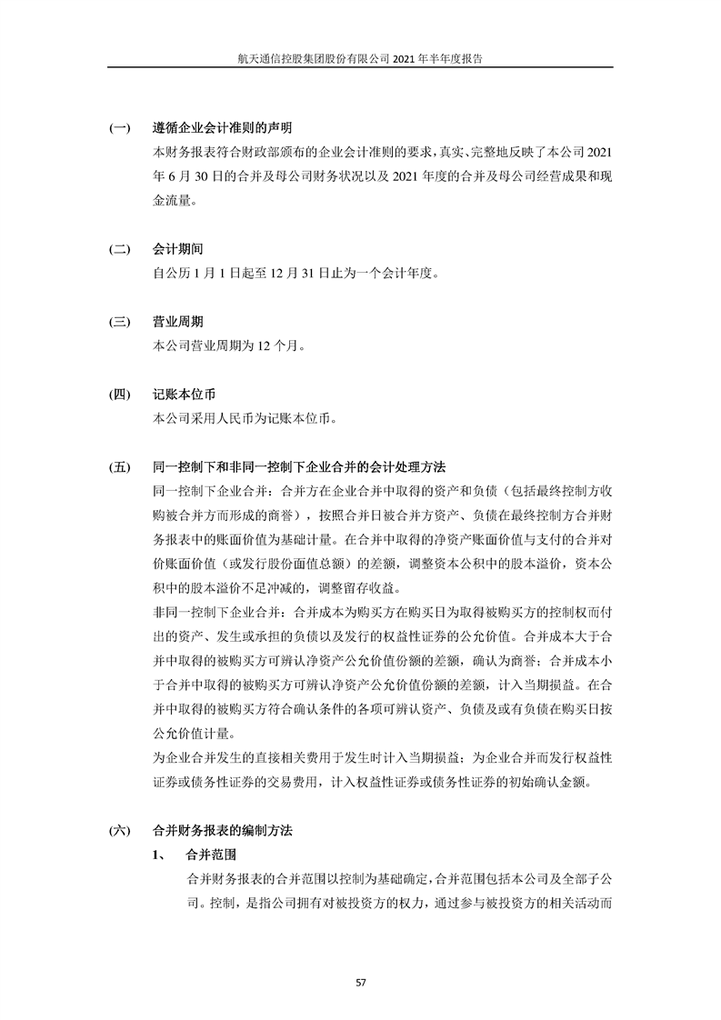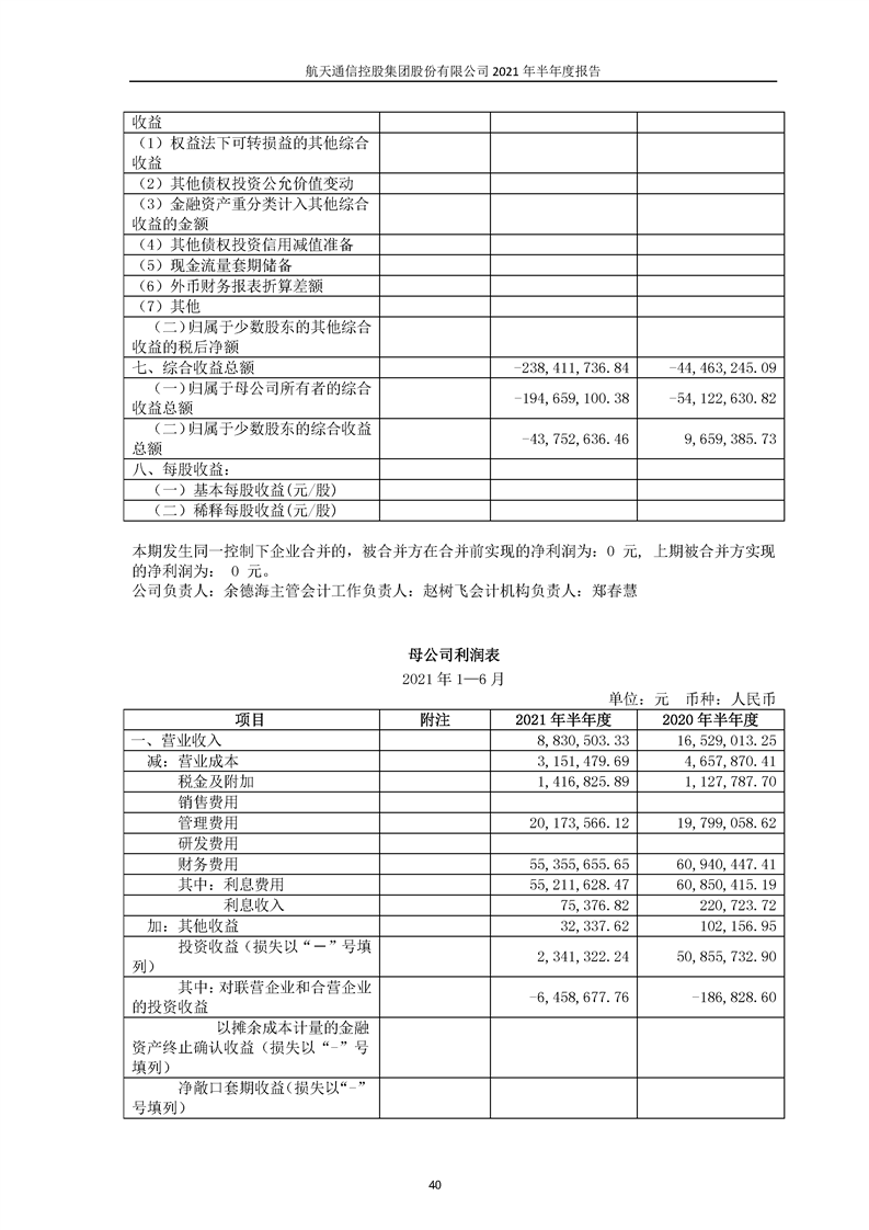航天通信控股集團(tuán)股份有限公司2021年半年度報(bào)告