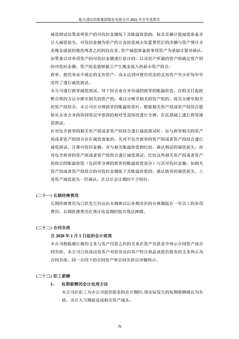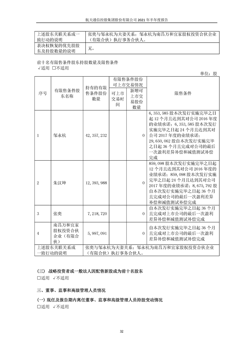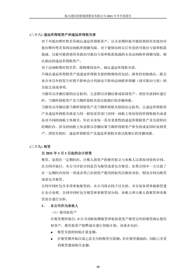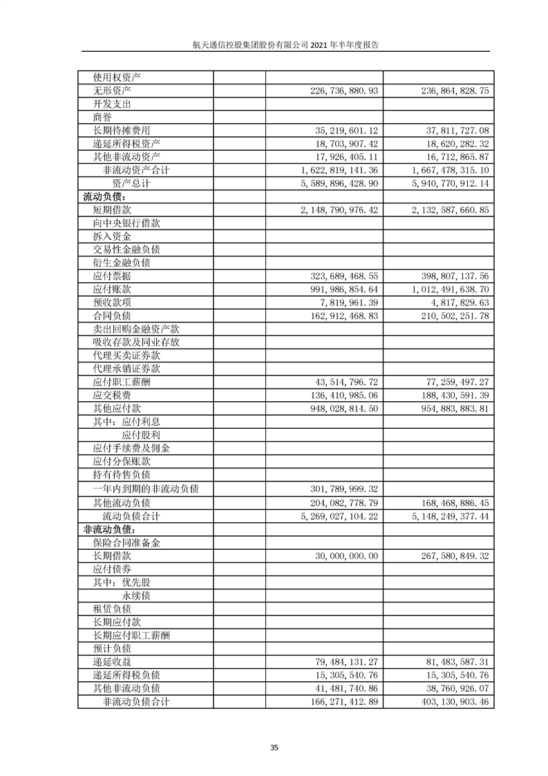 航天通信控股集團(tuán)股份有限公司2021年半年度報(bào)告